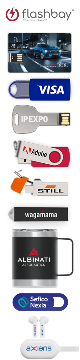 また、USB製品の各モデルそれぞれに各容量の商品を用意し、様々な印刷手法やオプションの組み合わせによってお客様のブランディングを効果的にサポートします。