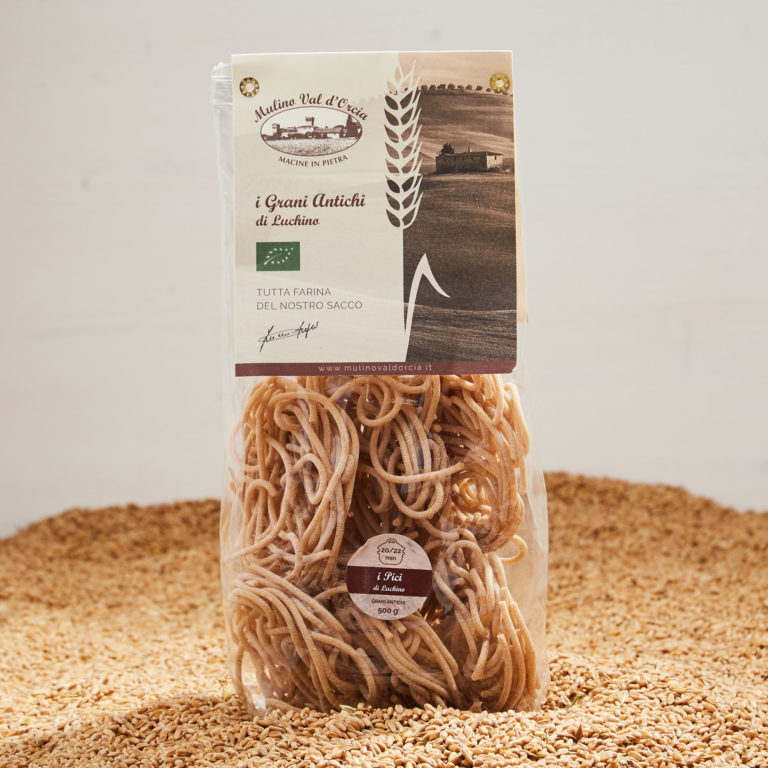 Prima di essere mugnai e mastri pastai siamo agricoltori ed è questo che fa la differenza! Nella nostra azienda in Toscana produciamo pasta, farine macinate a pietra, cereali, legumi e vino, tutto biologico!