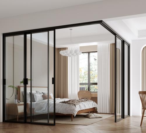 Idag erbjuder vi glasväggar & glasdörrar till hemmets alla rum, till vardagsrummet, sovrummet & köket för att skapa fler rum & tydlig avgränsning, men även till offentlig miljö som konferenssalar, kontor & studios. I ett kontorslandskap bibehåller de ljuset & skapar nya rum & möjligheter till avskildhet.